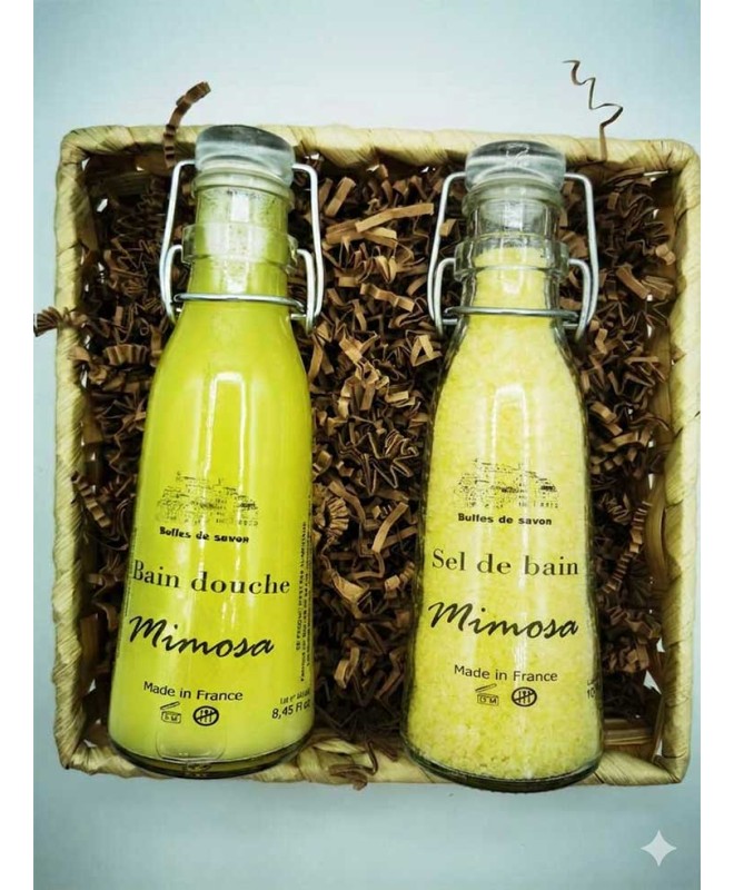 Profitez d'un moment de détente avec ce coffret artisanal fabriqué à Cannes. Il réunit un gel bain douche 250ml onctueux et des sels de bain 300g parfumés assortis, présentés dans un joli panier prêt à offrir.