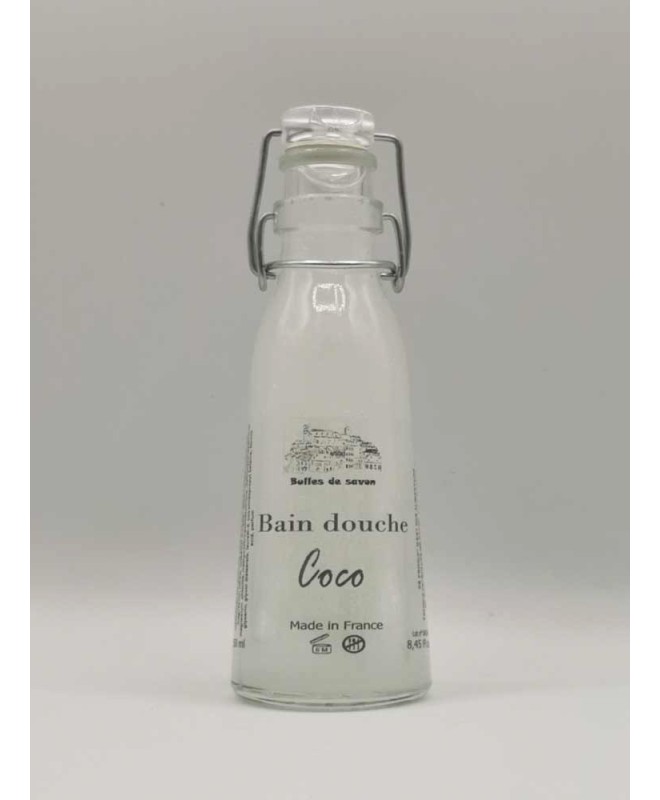 Gel douche artisanal fabriqué en France dans une bouteille retro et vintage. Idéal pour égayer la salle de bain ou offrir un moment de détente original.